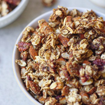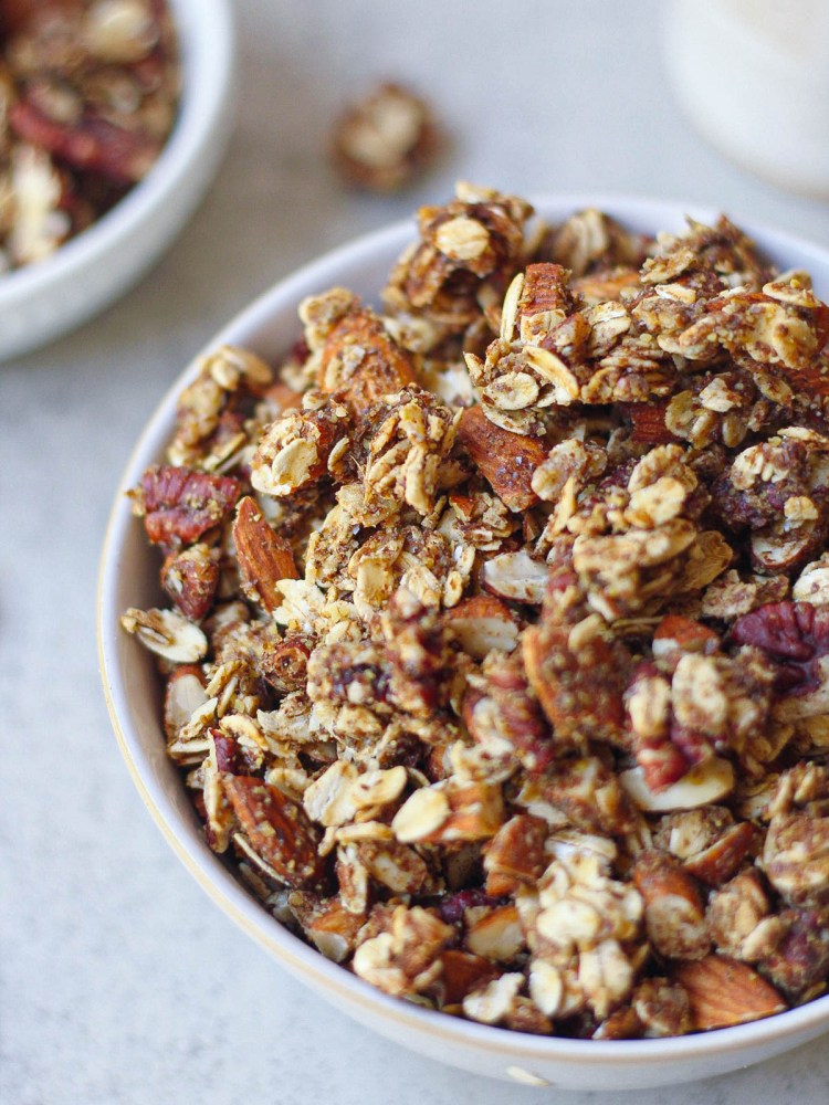 Tip: If you will be serving this granola to kids, make sure to chop the nuts much smaller to avoid a choking hazard!